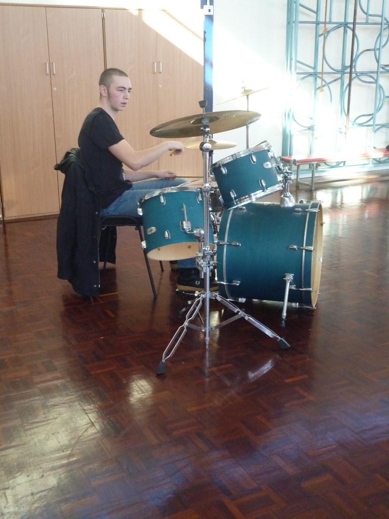 Engage! Y2 get down to the beat with a visiting drummer.