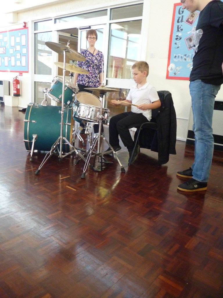 It don’t mean a thing if it ain’t got that… inspirational learning activity!  The drummer had all the chops, and Y2 had a chance to try out their hand on the bass and drum.  It wasn’t quite as easy as he made it look.