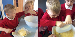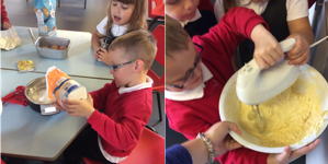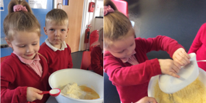 It was Family Snack Morning.  So that meant baking – mixing – measuring – stirring – weighing – but no licking the spoon!
