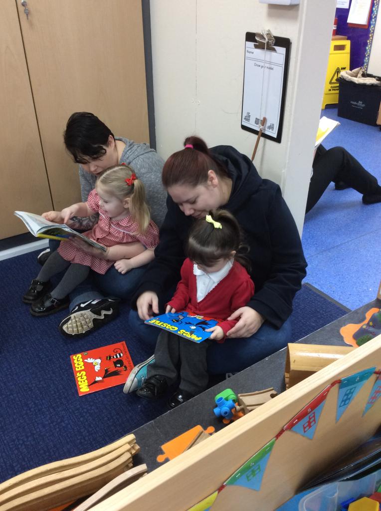 It was reading week. We love stories in Early Years, and – even better – the mums and dads and grandmas and granddads and carers could com in to read them!