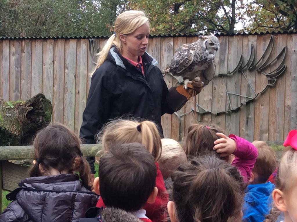 Reception rounded off their theme of “Why do leaves turn crispy?” with a trip to a Country Estate. They saw the sheep and the fields, the green leaves and the brown. Also the enormous Country Mansion and the Birds of Prey! Thank you to the Country Trust for making this visit possible.