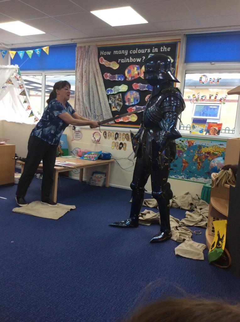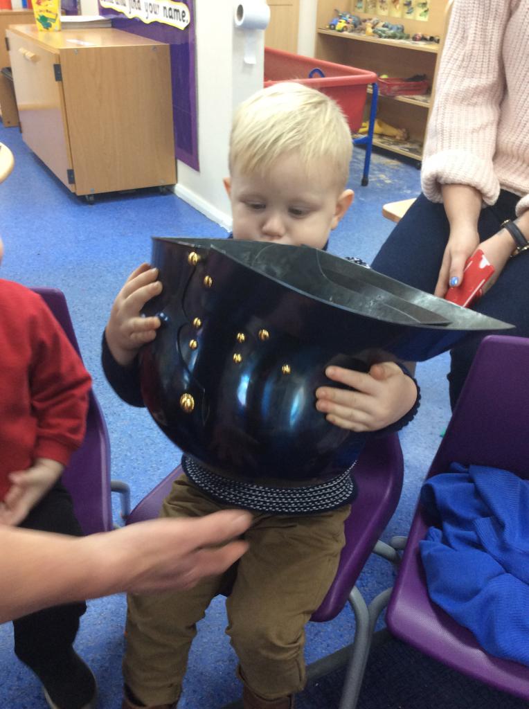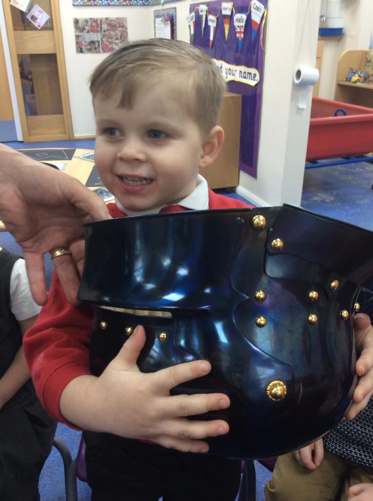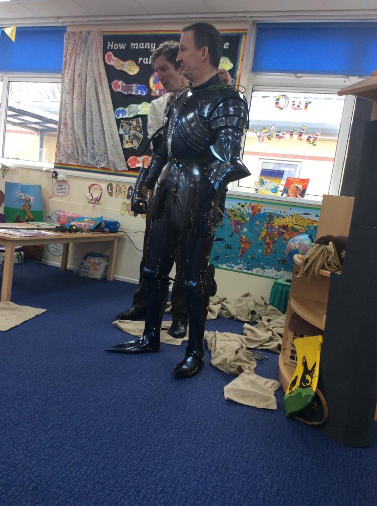 Gadzooks, he’s back again. That armour is both big and heavy when you’re three years old!