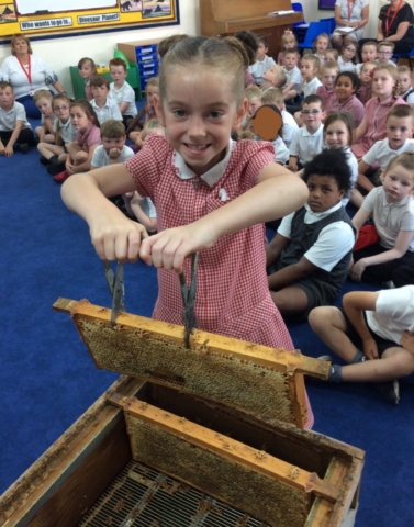Y1-2 were learning about minibeasts. This week was honey week, and they learnt all about beekeeping. They tried on the bee suit, took the hive apart, spun the extractor and best of all… Tried the honey![envira-gallery id=”3934″]