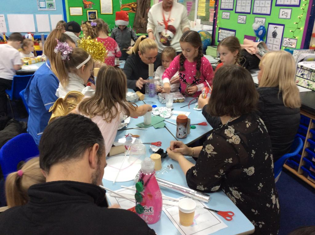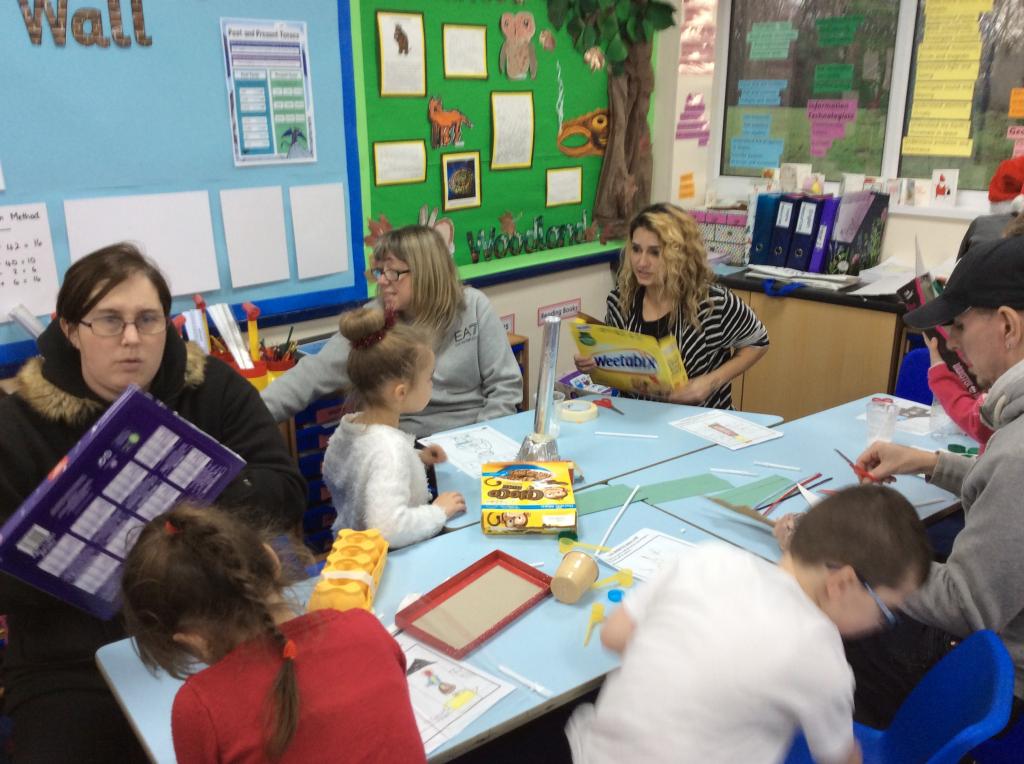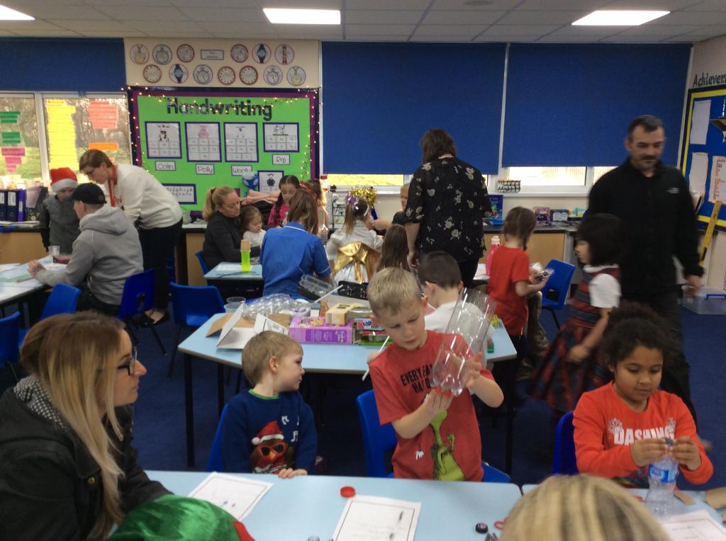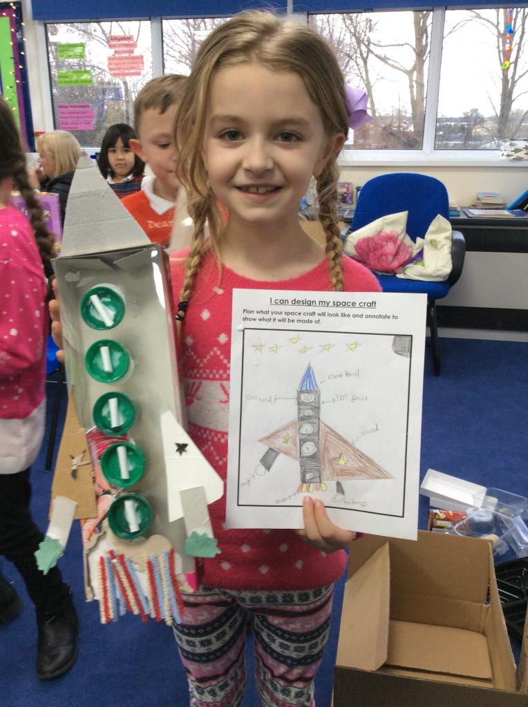 Year 1/2 finished off their learning with a big make! The theme had been “Moon Zoom” and they had met the aliens, rebuilt the spaceship and investigated all sorts of Moony Zoomy things. It was time to get the adults in to help them reach for the stars.