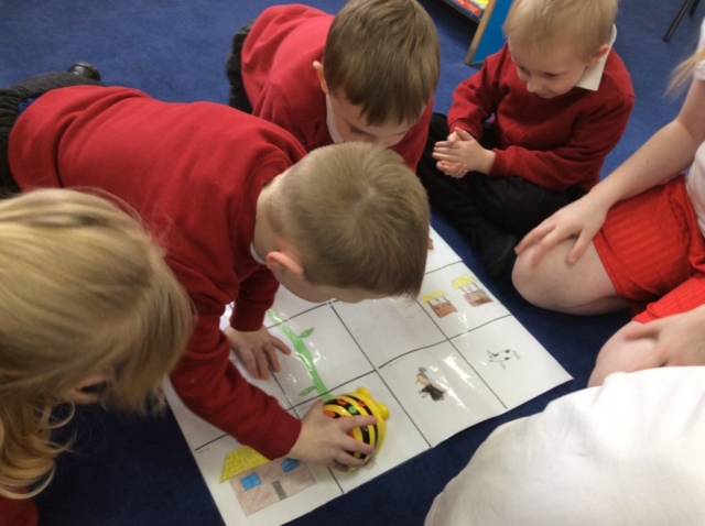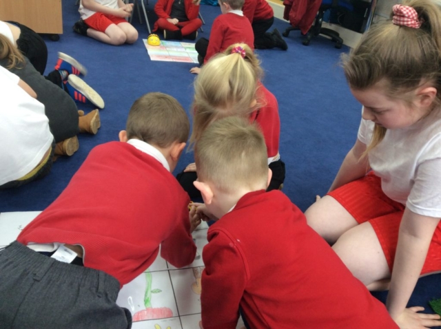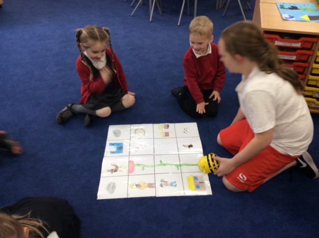 The Digital Leaders designed their own “Jack and the Beanstalk” Bee-Bot mats and brought them down to Reception. The Reception children had to work out how to get the Bee-Bot from the Giant’s castle back down to the cottage, or from the cow to the market. Fee-fi-fo-coding!