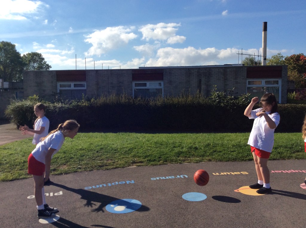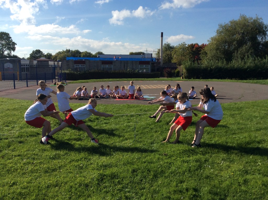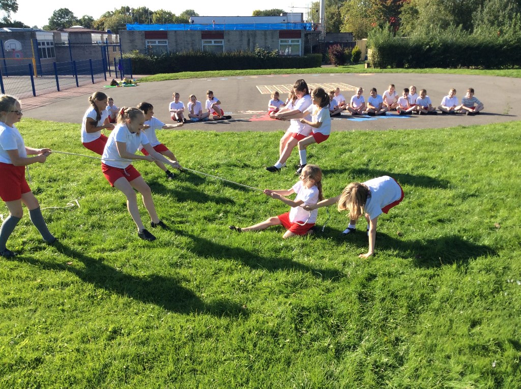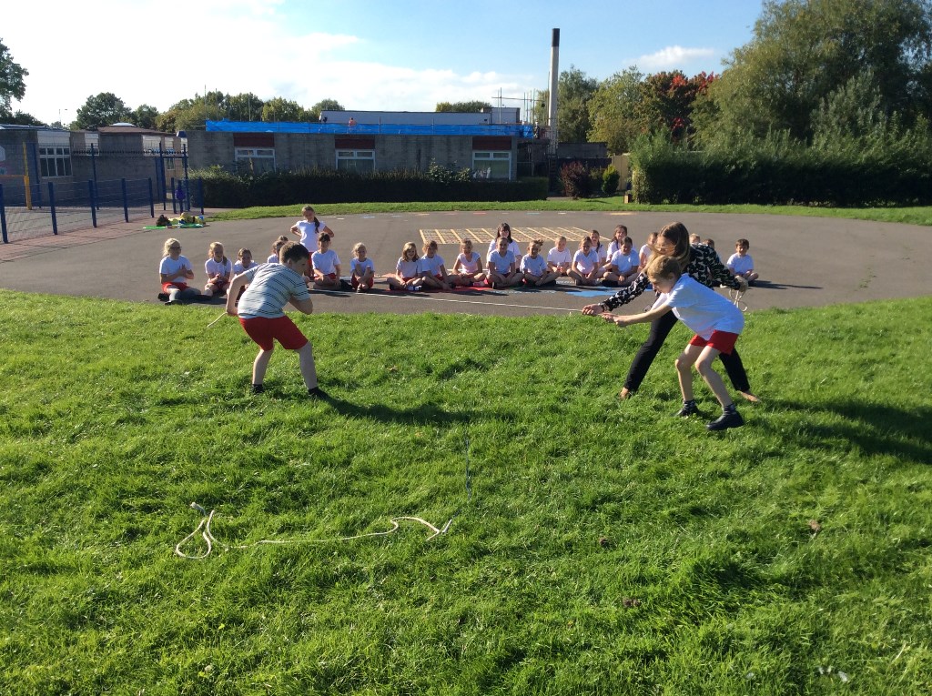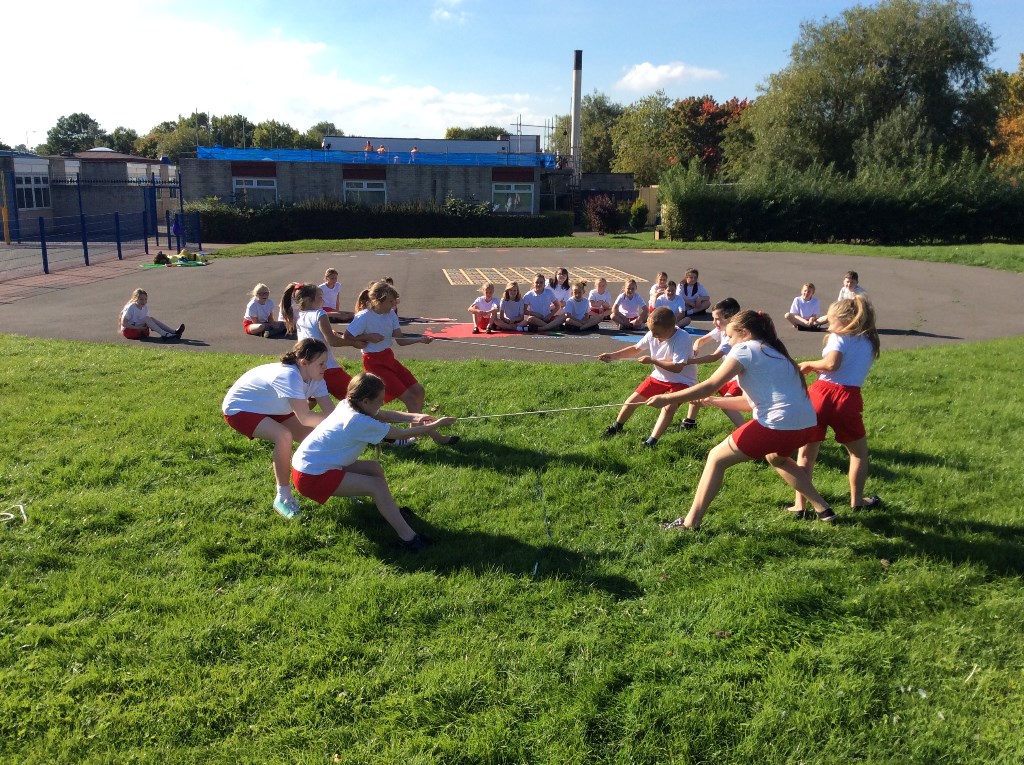 Year 5 took advantage of the sunny weather to get outside and investigate forces. They used balls, bean bags, hoops and ropes – and each other! Can you tell which forces they are investigating?