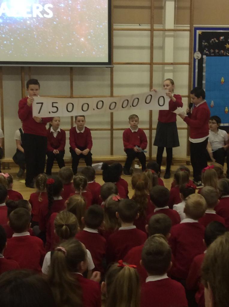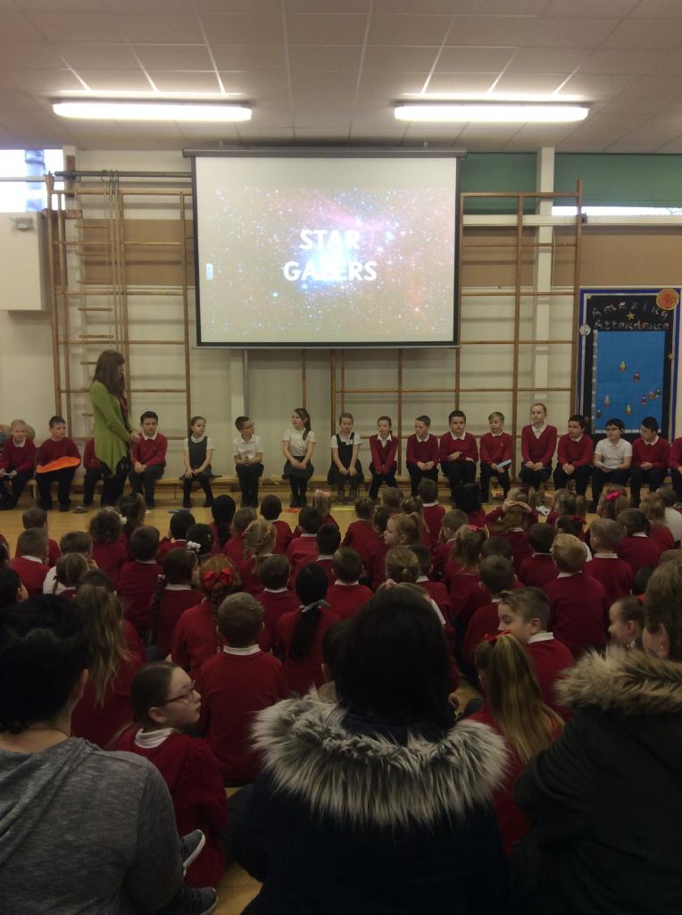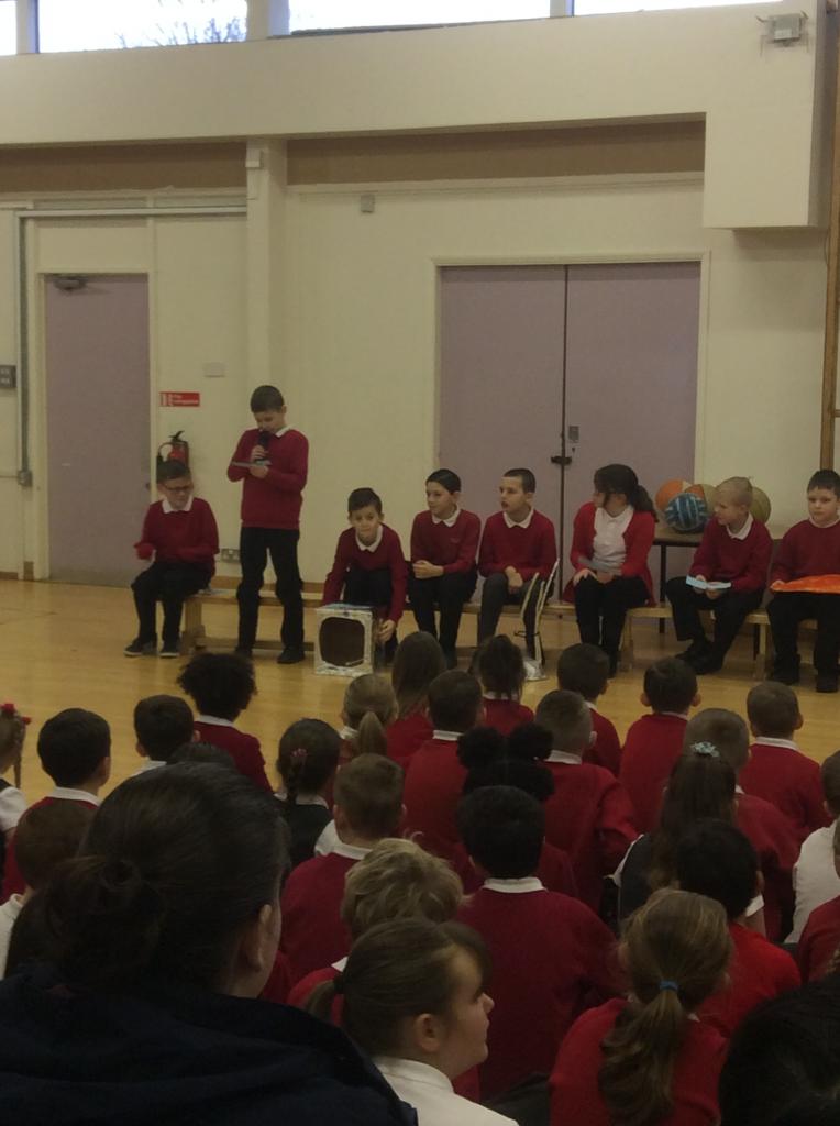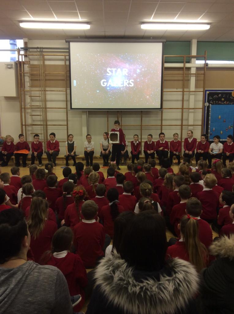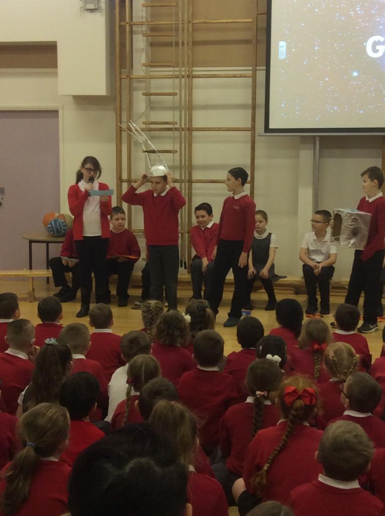 Year 5 were studying the topic of Star Gazers and we got to show off our new knowledge in a class assembly. We have been really interested and excited about this topic! Using card, tissue paper and lots of PVA glue we created our planets of the Solar System and the Sun. In our assembly we used food to compare the sizes of the planets and told everyone how far away we were from the Sun and Pluto (millions of miles). There were guest appearances from Neil Armstrong, Yuri Gagarin and Tim Peake! We also tried to convince our audience to live on Mars forever.