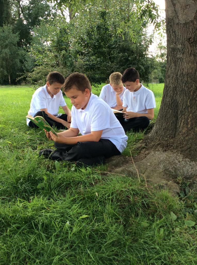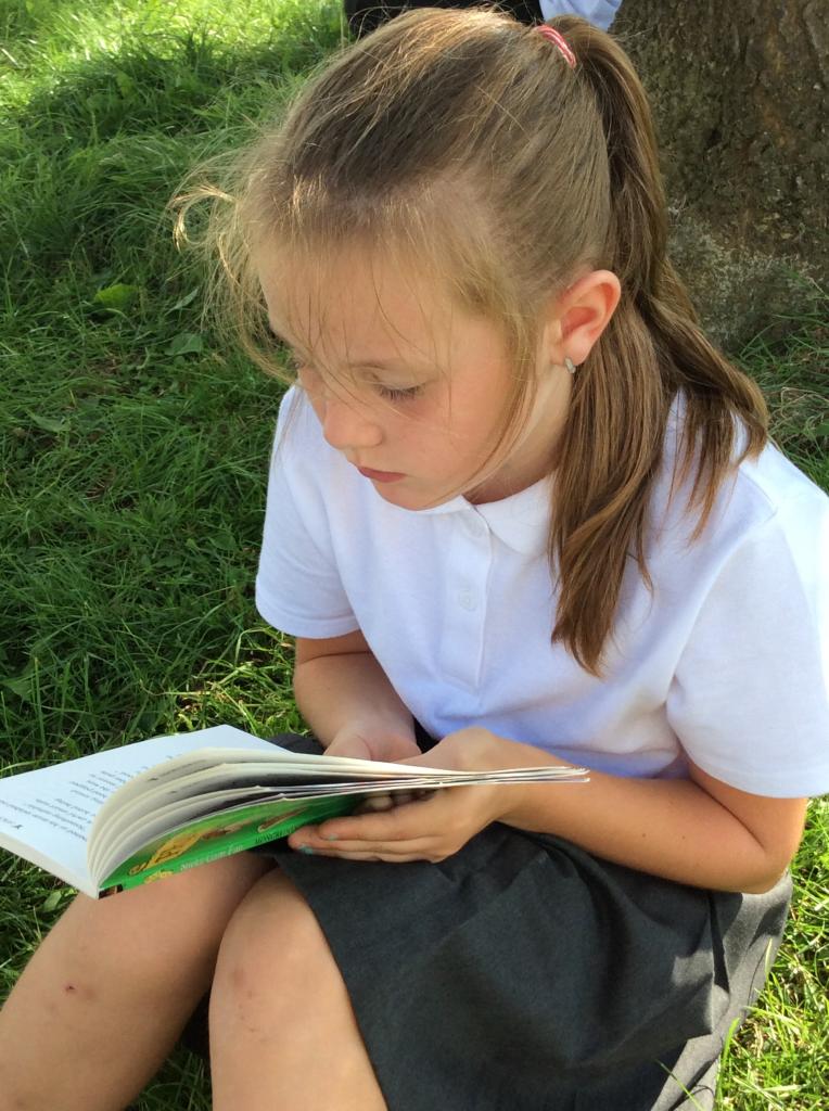 Year Five reading outside