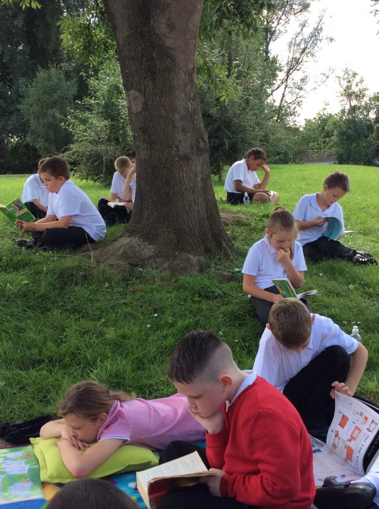 It was the first week back. It was hot. Year Five needed a break so they took their books outside and it all got quietly better…